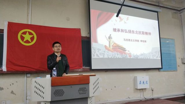 3月24日18:30材化学院团委于11号楼112教室举行以“弘扬和传承东北抗联精神”为主题的日常团课。本次团课由马克思主义学院李世辉老师主讲,材化学院部分团员参与本次团课。