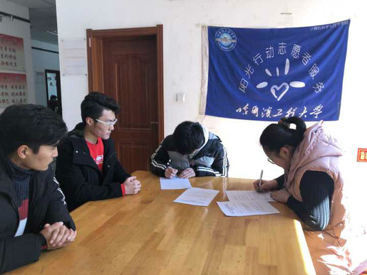 3月27日,计算机学院“阳光行动”志愿者服务队与哈尔滨文化家园社区续约续约志愿服务协议。文化家园社区主任高宏姣,计算机学院团委书记李超,志愿者协会会长张沄嵩、志愿者综合事务部部长阿里木、许航同参加本次续约。