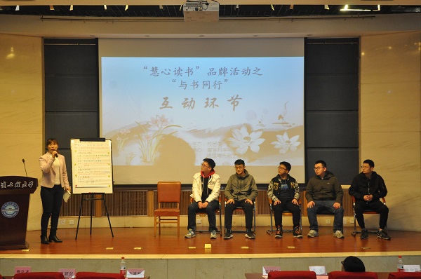 4月19日,由校团委主办、理学院团委承办的慧心读书品牌活动之“与书同行”活动在图书馆图书报告厅举办。数学科学学院院长沈继红、校党委学生办公处副处长丛建伟、物理与光电学院党务副书记吴岚、数学科学院与物理与光电工程工学院学生工作处办公室主任张丽剑、团委书记董云吉、哈尔滨工程大学图书馆老师陈曙光以及樊登读书黑龙江省执行会长杨运才参加此次活动。