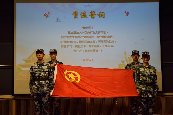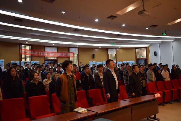 主题团日活动在庄严的国歌声中拉开序幕,校级优秀共青团干部标兵同学窦浩铭以“纪念五四运动100周年”为主题讲授微团课,回顾“五四运动”百年的风雨征程。2018级团员青年朗诵《青春乐章》,团员青年们精彩表演,赢得了现场人员的掌声。全体团员青年面向鲜艳的团旗,宣读入团誓词,本科生、研究生党支部书记向团员代表佩戴团徽,全体团员青年重新感受入团仪式。院学生会秘书长、2018级辅导员李大任作为教师代表发言,他希望团员青年坚定理想信念,铭记五四光荣历史,弘扬伟大五四精神,增强团员荣誉感、责任感、归属感和使命感,在学习生活中严格要求自己,把无限的热情投入到努力学习中去,把灿烂的青春贡献到实现“中国梦”的征程中去。