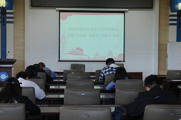 5月29日12时40分,经济管理学院团委于31号楼312室举办“青年大学习”暨解放思想“大比武 大练兵 大提高”院系决赛,由各支部初赛推选团员参加。