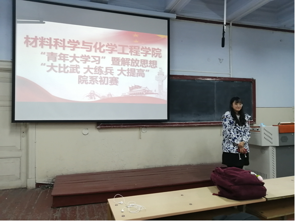 5月19日,材化学院于11号楼123大教室开展哈尔滨工程大学团干部“青年大学习”暨解放思想“大比武大练兵大提高”院系初赛。材化学院部分同学参加本次竞赛。