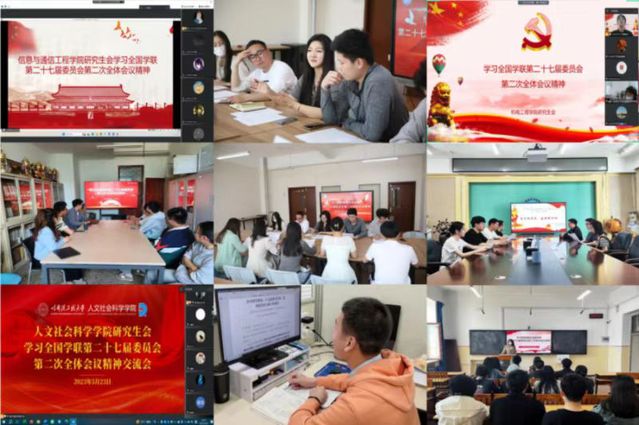 同时各学院研究生会于2023年5月19日至25日采取线上线下相结合的模式,积极召开全国学联第二十七届委员会第二次全体会议精神专题学习会,细研深学全国学联第二十七届委员会第二次全体会议精神,累计覆盖研究生3000余人次。学院研究生会工作人员通过此次学习更加深入理解了全国学联第二十七届委员会第二次全体会议精神,同时明确学院研究生会未来的发展方向和重点任务。